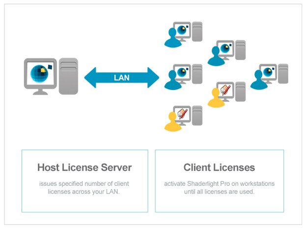 - The first machines to run Shaderlight will be licensed. When all client licenses are used the next machine will run Shaderlight in free mode.